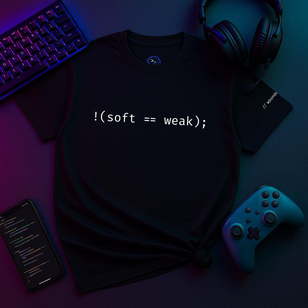A declaration that flips the logic: softness isn’t weakness — it’s emotional precision written in clean syntax.